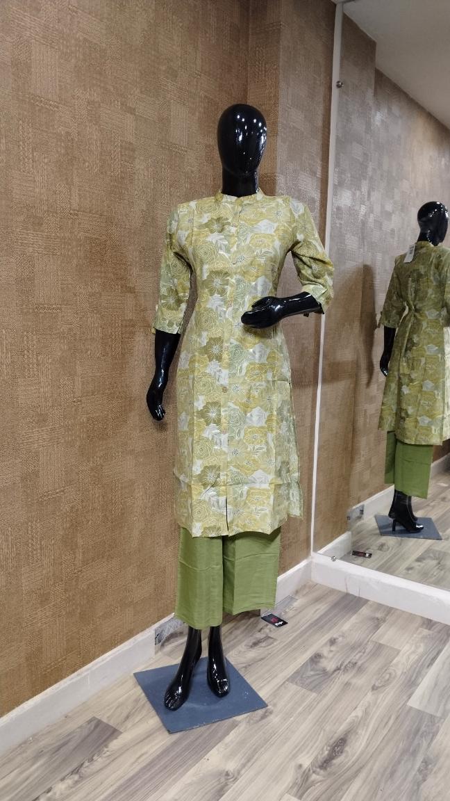 A light green and off-white ethnic suit set, perfect for daytime events.